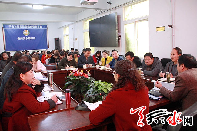 天天天水网讯(通讯员李月华)10月27日,天水郡街道集中学习了党的十九大报告精神,街道党委班子成员、机关站所、室办、社区全体干部参加了会议,会议由街道党工委书记成军同志主持。