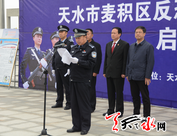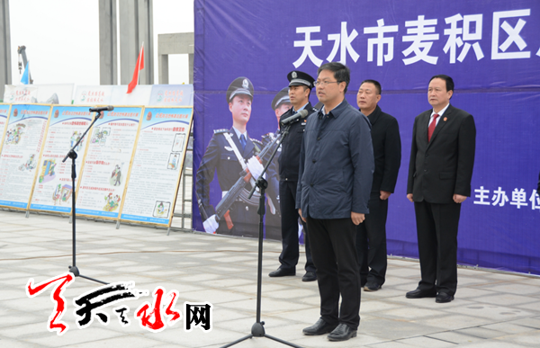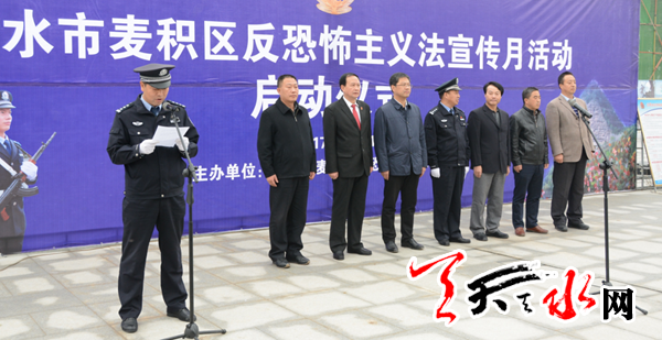 天天天水网讯 11月1日,天水市麦积区反恐怖主义法宣传月活动启动仪式在天水南站广场举行,区委常委、政法委书记、区反恐怖工作领导小组组长杜峥嵘,区政府党组成员、分局党委书记、局长、区反恐怖工作领导小组副组长李世和同志出席启动仪式并讲话。
