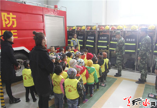 天天天水网讯 为宣传消防意识,进一步提高幼儿园广大师生的消防安全知识,11月1日上午,甘谷县恒盛雅居幼儿园的小朋友在老师的带领下来到甘谷消防中队,零距离的接触消防、体验消防。