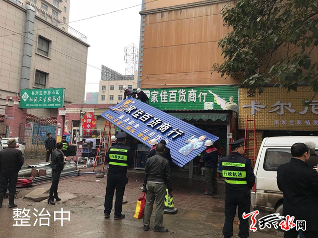 天天天水网讯【通讯员张慧慧 苏炳录】10月31日至11月1日,秦州区执法局东关中队对秦州区安居路非法占用人行道乱搭乱建行为依法集中进行拆除。