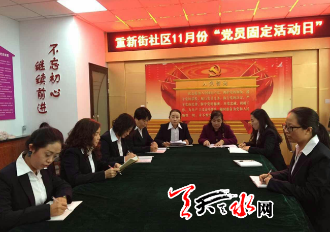 天天天水网讯 每个月的党员固定活动日都是一次新的学习和实践日,怎样在系列活动中寻求创新,是我们不懈的追求。11月,重新街社区以党员固定活动日为契机,通过开展多种形式的活动,充分发挥党组织主力军和先锋表率作用!