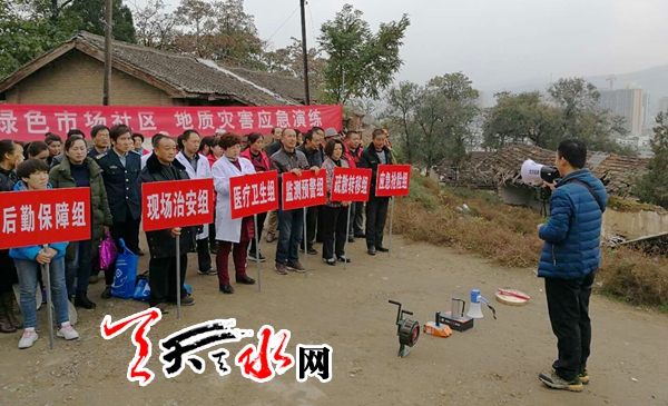 天天天水网讯【通讯员张彬】为增强社区居民对地质灾害群测群防意识,加强社区地质灾害防治工作,11月2日上午,秦州区中城街道绿色市场社区组织全体工作人员、网格员及北山滑坡地带的白家堡子、泰山庙灾害点群众等共100余人在白家堡子老军分区门口进行地质灾害应急演练。