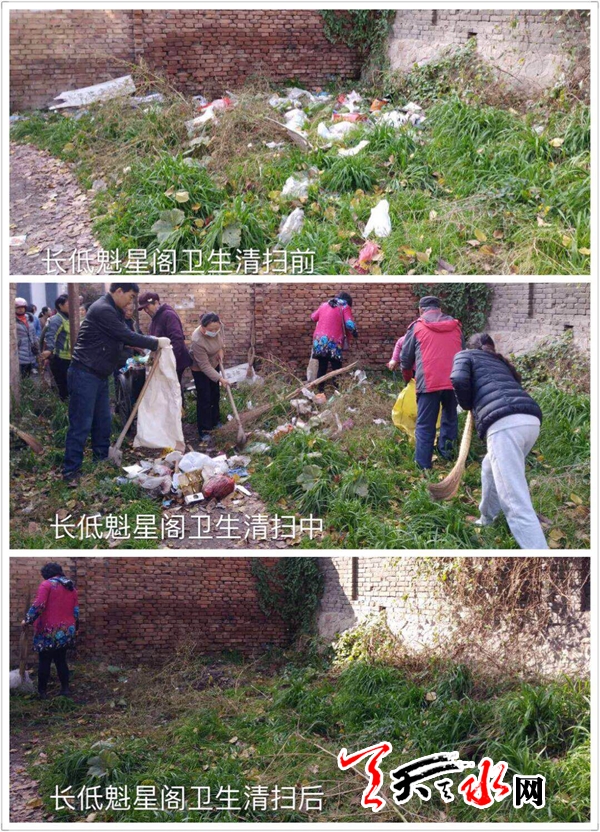 天天天水网讯 【记者 余碧波】全域无垃圾,创造和谐宜居的人文环境,前期在清理,重点在保持。经过前期集中清理,辖区已旧貌换新颜,为维持这来之不易的喜人成果,东十里社区2017年11月7日组织人员140余人对辖区内的大沟、后山、魁星阁三处再次进行了集中整治,三管齐下,奏响全域无垃圾的进行曲。