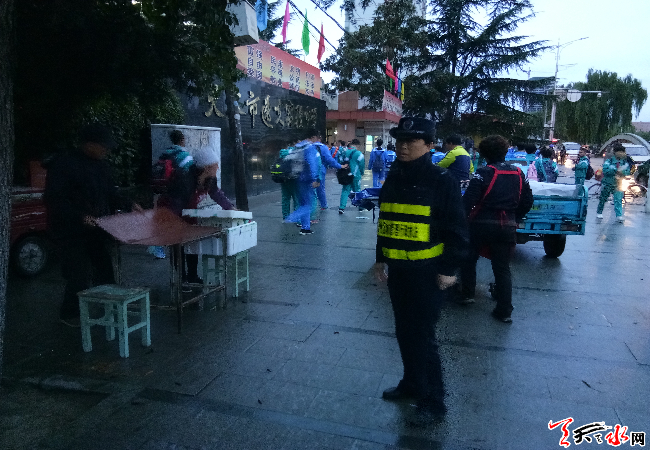 中队在确保逸夫中学和城南小学周边秩序良好的情况下,重点对天水市第二幼儿园周边进行集中整治,由于二幼因客观原因搬至南郭寺对面龙王沟早市,沟内摊点约500余处,致使学生家长上学难,中队积极部署,组织全队22名执法队员每天7点开始清理整顿,确保了道路通畅。