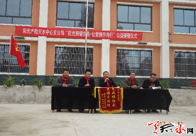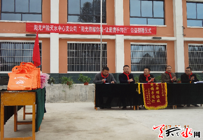 天天天水网讯 (通讯员 马文浩) 为了传播阳光关爱文化,弘扬“我是一缕阳光,温暖整个世界”的志愿精神,更好地履行企业的社会责任。2017年11月10日,阳光产险天水中支发起“阳光照耀你我.让爱携手同行”捐赠活动。
