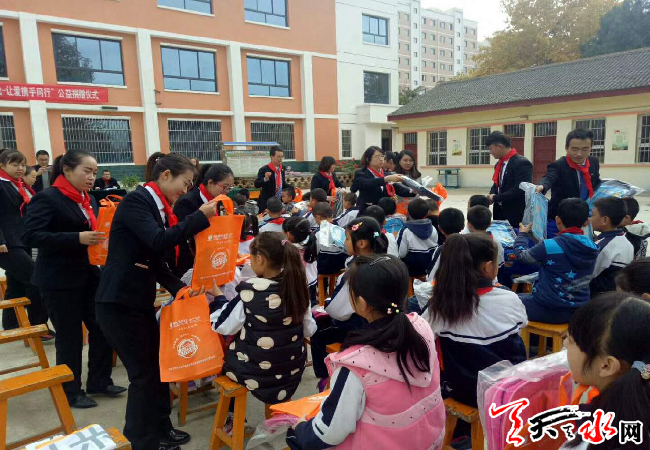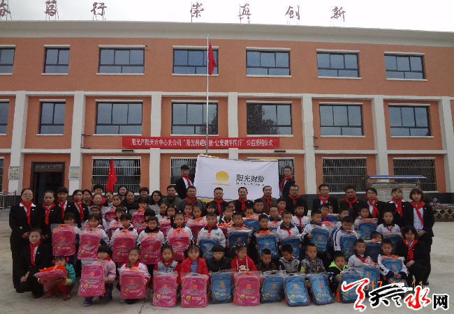 据介绍,天水市麦积区马跑泉镇颍川小学学生多为甘肃中车集团天水7452工厂的下岗职工子女,由于近几年天水7452造纸厂、啤酒厂效益差,营业状态趋于倒闭,好多下岗职工在家待业,无收入来源,个别贫困学生家庭甚至无力承担购买孩子所需的学习用品费用。阳光产险天水中支总经理王昌建获悉后,立即安排部署,抓紧落实购置捐赠学习用品,并组织公司全体员工积极参与,认真践行“分担风雨 共享阳光”的企业责任感。11月10日,“我是一缕阳光,温暖整个世界”公益捐赠活动在天水市麦积区马跑泉镇颍川小学拉开帷幕,天水市麦积区马跑泉学区校长马万林、主任蒲瑞琪,颍川小学校长袁存良,阳光产险天水中支总经理王昌建,公司员工及学生家长共120余人参加了本次捐赠活动。