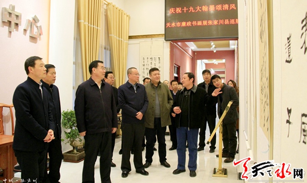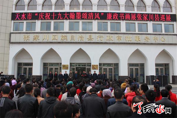 天天天水网讯 11月10日,由天水市纪委、市文联主办的天水市“庆祝十九大、翰墨颂清风”廉政书画巡展在张家川县文化艺术交流中心展出。县四大组织在家领导、市纪委、市书协相关领导参加了开展仪式。