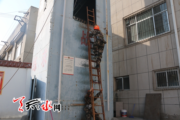 天天天水网讯(通讯员 景辽强)为进一步增强官兵业务技能素质,提升部队初战控制和打赢制胜的能力,结合总队即将举办的大比武竞技。七里墩中队组织全体官兵开展双人攀登六米拉梯操训练。