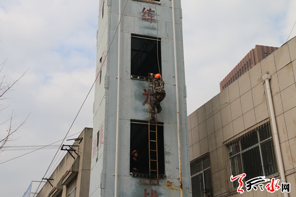 天天天水网讯(通讯员景辽强)为进一步提高官兵的业务技能水平,切实增强官兵的灭火救援能力。11月14日,七里墩中队组织全体官兵开展挂钩梯训练。