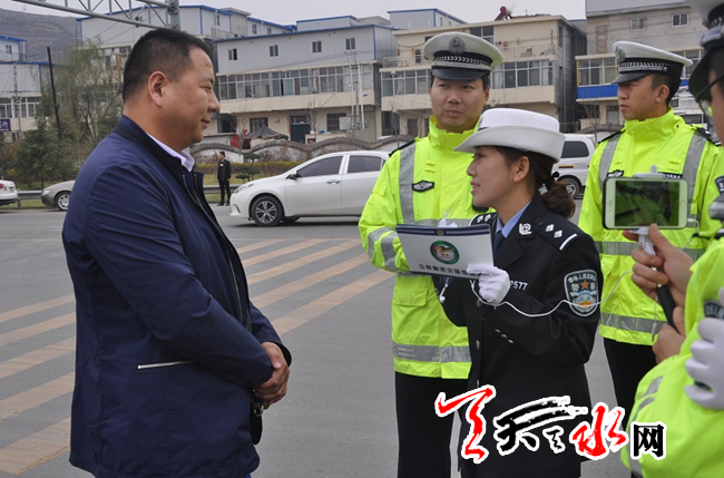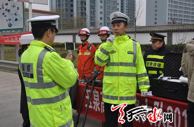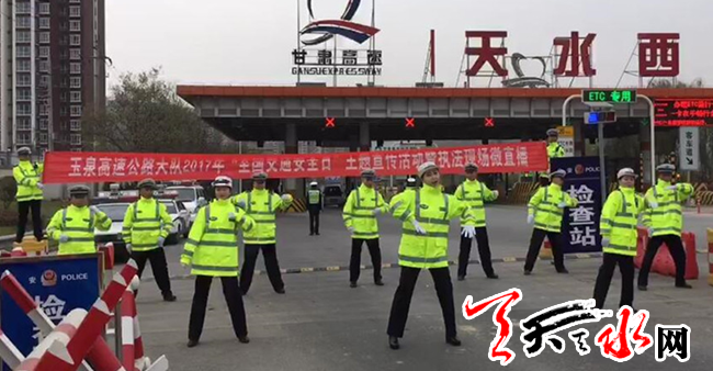 天天天水网讯【通讯员 豆彦文】2017年11月29日下午,玉泉大队民警齐聚西十里收费站,为迎接第六个全国道路交通安全日,举行了声势浩大地前期宣传“微直播”活动。