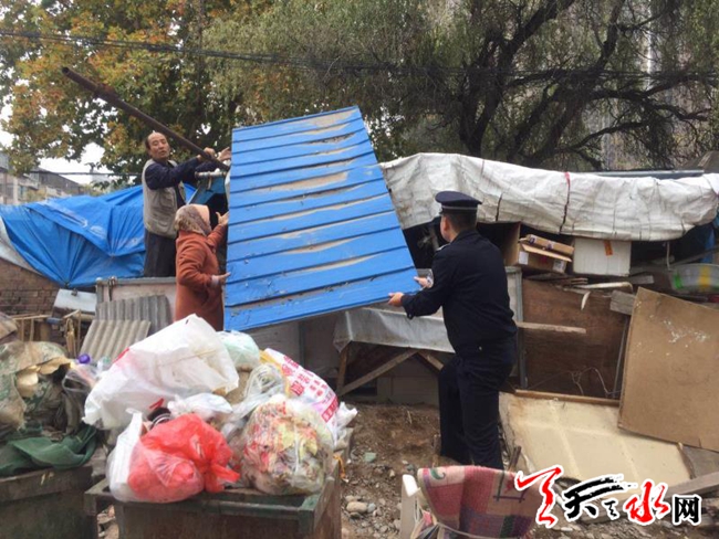 据了解,该中队在对辖区内进行日常巡查时发现,聪聪星幼儿园对面人行道上有一新建的简易构筑物,并靠近居民住宅楼,其构筑物主体是用四方遮阳伞为支撑,四周用废弃的塑料布围着,形成了靠近学校路边的“临时商店”。为此,该中队执法人员向“临时商店”店主进行了相关法律法规的宣传,并告知其建筑属违规建筑,需进行拆除。在了解情况后,店主表示愿意拆除,并在现场执法队员的协同下,对该违法搭建物进行了拆除。