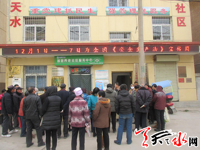天天天水网讯(通讯员曹彦彦)12月7日上午,天水郡街道王家磨社区开展了以“强化安全发展观念,提升全民安全素质”为主题的安全生产宣传活动。