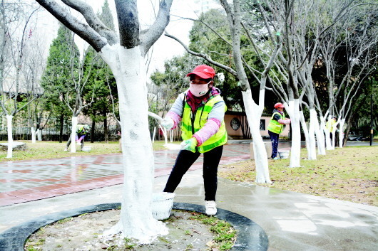 据秦州区园林处工作人员介绍,给树木刷白,一是冬季树皮因昼夜温差大容易冻裂,通过给树体刷白,将过多的阳光反射回去,可以降低树木自身的温度,从而减少树干昼夜温差,起到防寒保暖作用;二是能有效杀灭病虫害滋生体,刷白剂里的主要原料石硫合剂本身具有防虫杀菌作用,且在刷白剂里增加了防虫药剂,能够阻杀树下越冬的病虫害滋生体;三是树木刷白高度整齐一致,比较美观。