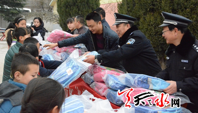 天天天水网讯 近日,麦积公安分局深入精准扶贫点麦积区元龙镇十谷川村学校开展捐赠“安全爱心包”活动。麦积区政府党组成员、分局党委书记、局长李世和参加捐赠仪式并做爱心讲话。