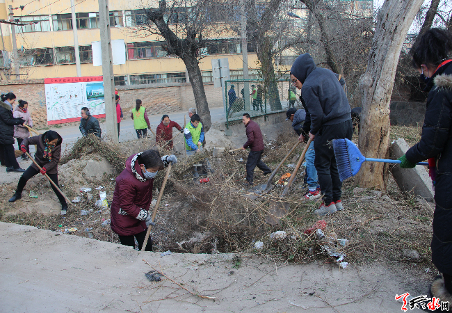 天天天水网讯(通讯员 王一鸣)12月15日上午,瀛池社区党员、干部同“绿马夹环境卫士”、居民志愿者120人,共同拿起扫把、铁锹对长仪路、大沟门沟渠内的杂草、垃圾进行清理。经过大家数小时的共同奋战,沟渠内杂草、垃圾被全部清理干净,沟渠焕然一新。