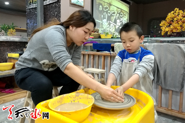 12月17日,我市一商场内孩子在专业老师的指导下学习陶艺。近年来,陶艺制作在我市越来越受到孩子们的欢迎,一些孩子趁着周末去学习拉坯、彩绘等陶艺制作工艺,提高动手能力和想象力。 记者 周文涛 摄