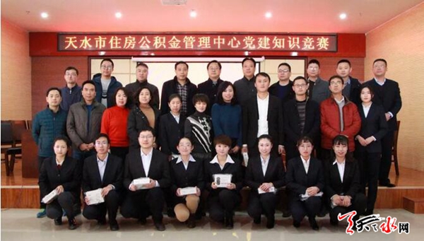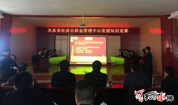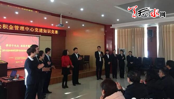 天天天水网讯 为进一步学习贯彻落实党的十九大精神,以“赛”促“学”促进干部职工掌握和领会党的十九大精神实质,12月20日上午,市住房公积金管理中心甘谷管理部和清水管理部组织开展了一场别开生面的以“学习十九大 共筑中国梦”为主题的党建知识竞赛。市中心党组书记、主任张长平,副主任杨志炜,总会计师秦毅学,副主任胡永平,各科室、管理部负责人现场观看了比赛。