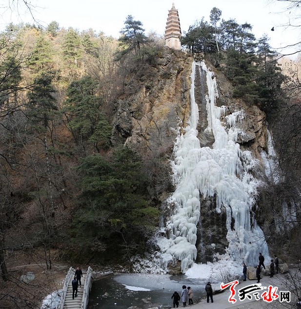 1月1日,游客在麦积山植物园观赏冰瀑景观。