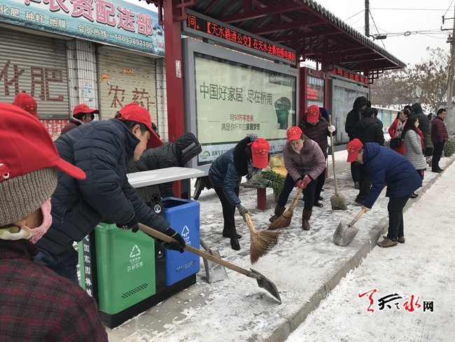 天天天水网讯(通讯员 王桂芳)近日,我市迎来了今冬的第一场大雪,白雪覆盖了城区的大小街道。伴随着凛冽的寒风,气温骤降,路面积雪结冰,给居民出行带来诸多不便。