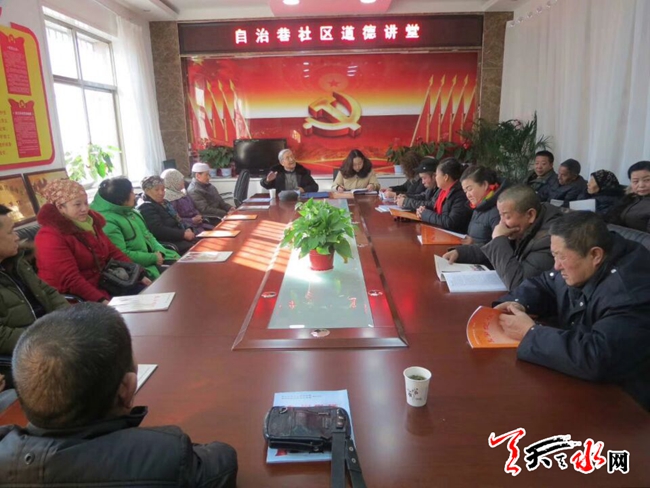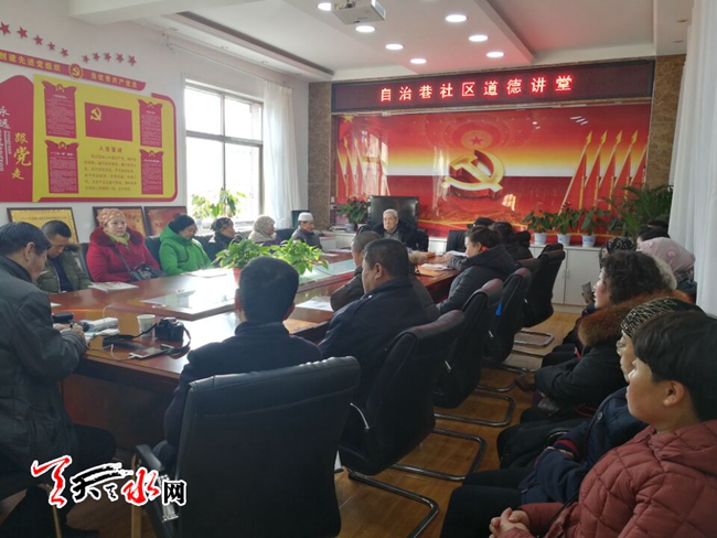 天天天水网讯(通讯员安冬梅) 1月8日下午,天水孔子文化研究学院理事长、副院长张克源先生应秦州区中城街道办事处自治巷社区的邀请,前往该社区进行“学习十九大精神,传承优秀中华传统文化”的辅导报告。
