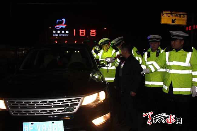 ▲1月9日晚上,天水交警新兴高速公路大队查处一起酒后驾车违法行为