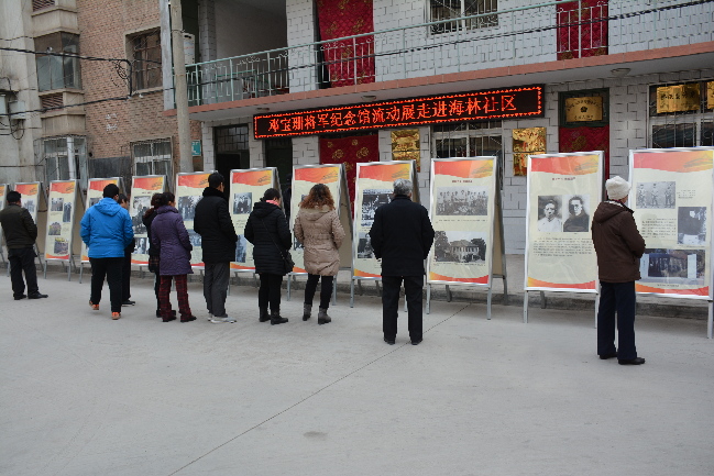 邓宝珊是中华民族著名的爱国将领,亦是优秀的共产党人。有关邓宝珊将军生平事迹的二十块展板在海林社区办公楼前呈一字排放,整齐又醒目。前来观看图片的群众在展板前驻足观看,十分专注。爱国主义图片展进社区活动,不仅拉近了居民与纪念馆之间的距离,也让居民群众在工作生活之余,更多的了解了抗战历史文化及爱国英雄人物,增强了居民群众的爱国意识。(杨东花)
