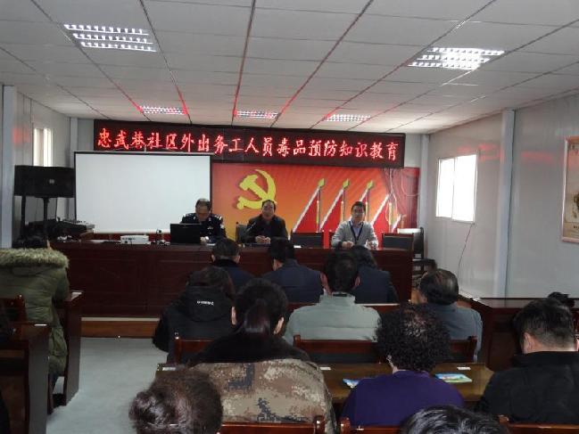 东关派出所副所长王和平讲解了毒品的巨大危害,播放了发人深省、振聋发聩的禁毒教育专题片。活动现场,社区禁毒专干发放禁毒教育宣传手册200多份,社区民警向大家展示了20多种毒品样品。街道党工委书记任保平同志最后强调,大家一定要认清毒品对个人、家庭、社会的巨大危害,时刻提高警惕,远离毒品,参与禁毒斗争,让毒品成为“过街老鼠,人人喊打”。忠武巷社区禁毒教育活动,受到居民的充分肯定,并拉开了2018年社区禁毒、铲毒序幕。(邢周祥)