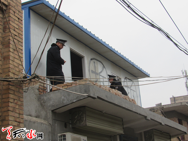 天天天水网讯(通讯员赵懿)1月23日,秦州区执法局机动一中队在巡查西关辖区时发现,在已规划拆迁范围内有多家进行抢盖,区执法局随即组织协调征迁中心、公安、拆迁工程队等多个部门共50人,对其中的一户进行依法强拆,共拆除违建面积约50平方米,对其他几户抢盖行为制止并下发相关法律文书,将进行逐一拆除。