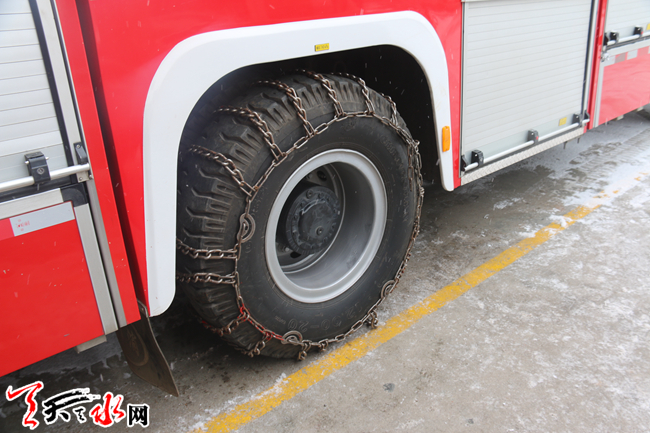 天水:消防车“穿上”防滑链抵御“大寒潮”来袭