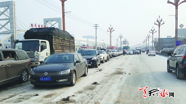 1月25日上午10时许,记者在天水西收费站附近看到,准备上高速的车辆在现场交警的指挥下排在道路两侧。