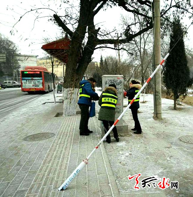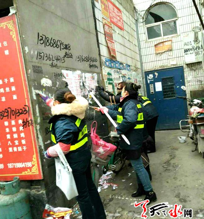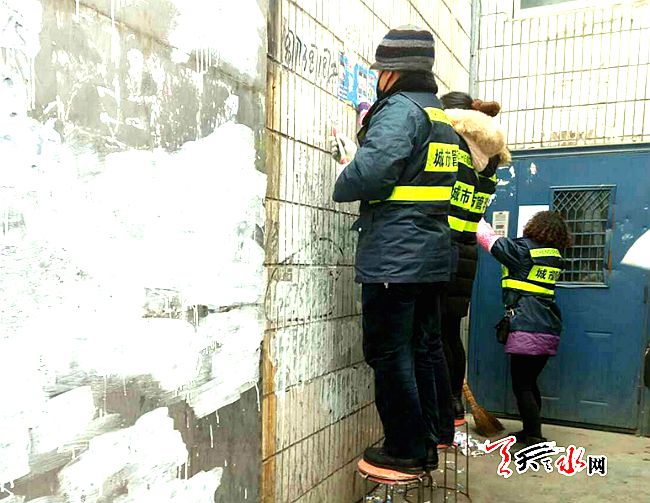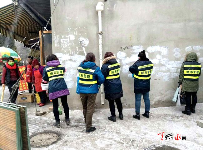 天天天水网讯【通讯员 周维元】为喜迎春节到来,提升城市文明形象,推动城市环境卫生长效管理,近日,秦州区执法局东关中队开展清理“牛皮癣”专项整治活动。