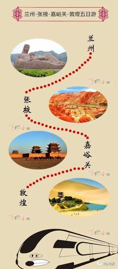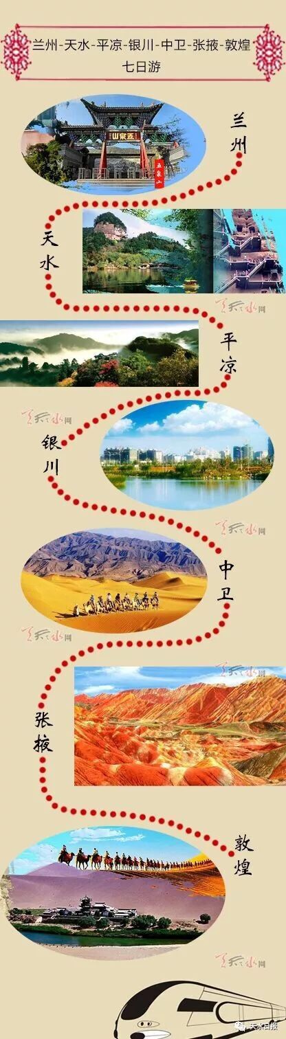 天天天水网讯【记者罗双红】中国铁路兰州局集团有限公司日前发布消息称,将围绕满足红色旅游、家庭旅游、休闲旅游、生态旅游等市场需要,挖掘甘、宁境内旅游资源潜力,开行“环西部火车游”旅游专列,开通三条“环西部火车游”旅游线路。其中,兰州-天水-平凉-银川-中卫-张掖-敦煌七日游将成寻根问祖、石窟文化、红色旅游、扶贫旅游、温泉养生大环线旅游线路。