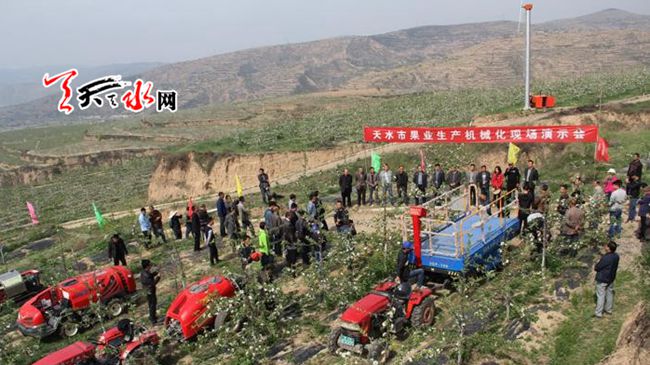 一是普及农机实用技术。紧密结合重点农时季节和农业重点项目实施,大力推广机械耕整地、覆膜、播种、收获及平田整地等重点农机作业,普及机械深施化肥、机械植保等田间管理机械化技术,努力提升主要农作物生产机械化水平。二是开展主要农作物生产全程机械化示范。在抓好小麦、玉米、马铃薯等粮食作物全程机械化示范的基础上,各县区结合县域经济特点,探索全程机械化生产模式,将全程机械化技术向果业、牧草和中药材等领域拓展,建立主要农作物全程机械化示范点35个,完成示范面积1.5万亩;在甘谷、武山、秦州、麦积四县区实施深松整地补贴和作业监测试点,完成深松整地作业面积2万亩,开展了伏松、犁耕、秋松三种耕整地作业方式播种马铃薯对比试验。三是认真实施农机化推广项目。省列农机化示范推广及体系建设项目在清水县永清镇、王河镇创建示范点2处,以机械深松整地、马铃薯机械起垄覆膜播种联合作业和机械收获为主推技术,完成示范面积1200亩;市科技支撑计划药材挖掘机引进与试验示范项目,引进中药材挖掘机械,在秦州区大门镇建成2000亩中药材机械化生产示范基地,同时在麦积、清水进行了试验示范;省列果业生产全程机械化抓点示范项目在秦州区太京镇席范村建立示范点,完成机械化剪枝、植保、除草、施肥等示范面积500亩、对比试验30亩。
