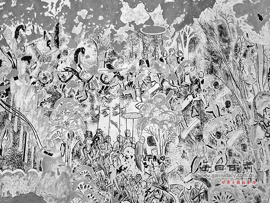 据了解,此次麦积山石窟参展的艺术作品中,《涅槃经变》系杨晓东先生耗时3年时间临摹完成,且首次参加国内外展出。这幅艺术品长近10米,高2米,由400多个人物形象组成。