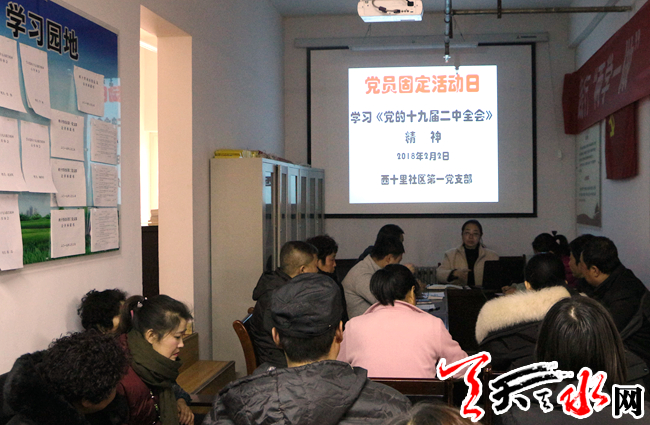 天天天水网讯(通讯员汪文惠)2月2日上午,天水郡街道西十里社区党总支精心安排组织下辖三个党支部开展形式多样、内容丰富的系列“党员固定活动日”活动。