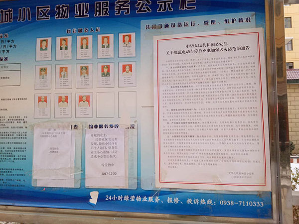 清水大队宣传人员深入辖区内各个小区以及消防重点单位就电动车停放及充电的安全隐患问题张贴出消防安全管理公告,同时对小区居民们开展了消防安全知识的宣传讲解,并告诫物业管理单位应立即对所在住宅小区、单位的电动车占用禁停区域私停乱放、私搭乱接电线等违规情况进行集中清理;要因地制宜集中设置电动车充电区域;要在禁停区域醒目位置张贴电动车禁停标志,定时展开检查巡查,及时劝阻、制止违规停放、充电行为。