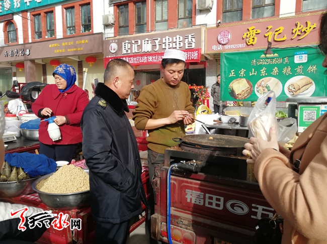 天天天水网讯(通讯员何涛)近日,秦州区上九“朝观“如期举行,为确保“ 朝观“期间的食品安全,严防食物中毒事件,进一步严格食品流动摊贩的规范经营,2018年2月23日中城街道食药监所在辖区内认真开展了食品摊贩监督检查工作。