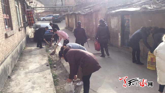 天天天水网讯 春节过后,辖区环境卫生有所反弹,为给辖区居民营造一个干净、整洁的居住环境。2月24日上午,秦州区天水郡街道暖和湾社区组织辖区居民、志愿者50余人开展节后环境卫生整治活动。