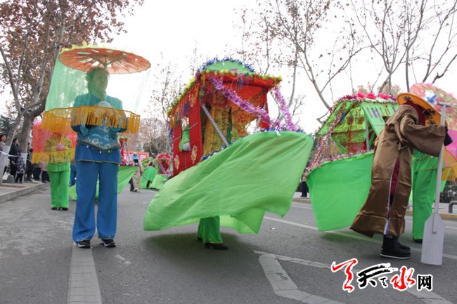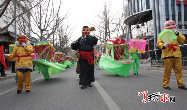 天天天水网讯 锣鼓喧天辞旧岁,花船起舞闹新春。2月24日,农历大年初九, 秦州区天水郡街道暖和湾社区精心组织社区的民俗表演队到辖区单位和居民院落进行民俗文化表演、社火拜年。