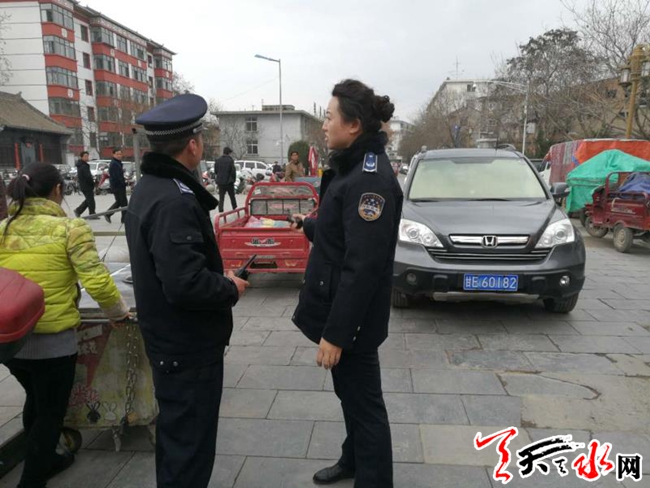 为避免人流和摊贩进入景区周边造成交通堵塞,秦州区执法局西关中队集中队执法人员严格按照局领导安排部署,对景区周边流动摊点进行分区分片管理,按要求从白天到夜间安排人员不间断巡查,将管理路段、管理标准、责任人落实到位;在保证景区周边车辆正常通行的基础上规范庙会摊贩有序经营。