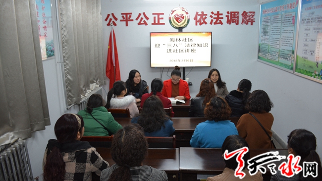天天天水网讯 据秦州新闻网消息,“三八”妇女节来临之际,为了使社区妇女过上一个有意义的节日,海林社区于3月6日上午,为社区女性朋友送上了一堂法律知识进社区讲座活动。