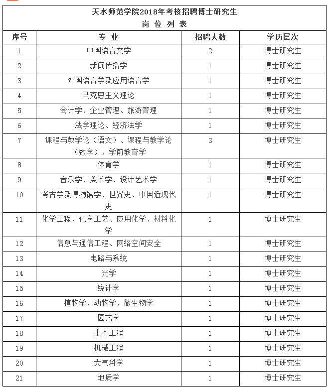 (注:以上岗位列表已由甘肃省人力资源和社会保障厅《甘肃省省直事业单位公开考核招聘工作人员公告(2018年第一期)》中正式发布,未列入我校本年度招聘计划的其他相关专业的博士研究生可随时联系。)