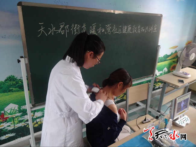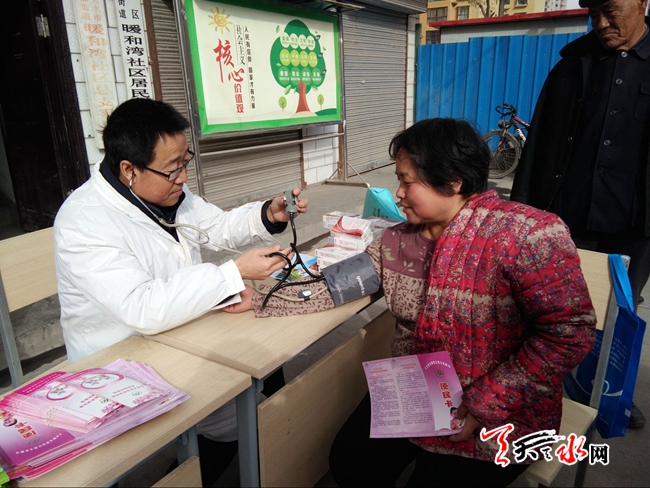 天天天水网讯 3月7日上午,天水郡街道暖和湾社区妇联组织辖区妇女开展了"庆三八"健康知识教育讲座及义诊活动。