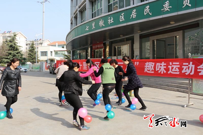 天天天水网讯 “加油、加油…”3月7日上午,七里墩街道七里墩社区、东十里社区联合举办了以“我健康、我快乐”为主题的“三八”国际劳动妇女节趣味运动会,两个社区共45人参加了活动。