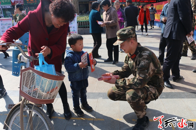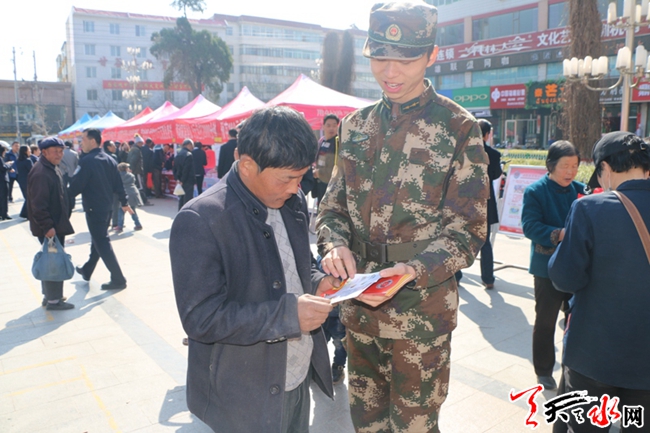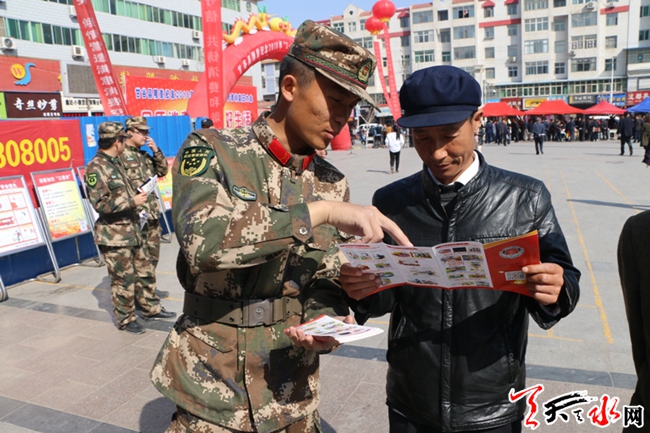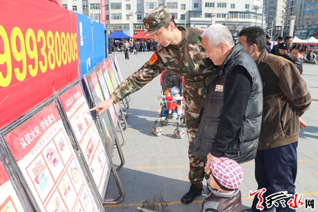 天天天水网讯(通讯员牛翔宇 王俊)3月14日,甘谷县政府在大十字广场举行以“品质消费,完美生活”为主题的“3.15”国际消费者权益日,甘谷消防大(中)队充分利用这一契机,组织消防官兵开展消防宣传活动,让广大人民群众接受消防安全知识教育。