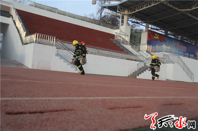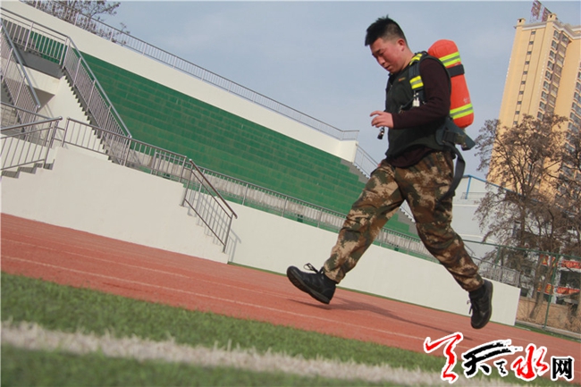 按照支队训练计划,中队组织全体官兵开展5000米背负空气呼吸器跑、负重登楼、100米负重跑、60米肩梯跑等训练,着重的训练了中队官兵的耐力、爆发力和意志力。训练过程中,组训干部合理利用竞争机制,将人员分为两组,以此提升官兵的积极性和训练热情,中队官兵积极投入训练工作,坚持挖掘自身潜能,咬牙争取良好成绩,切实顾及团体利益,有效保证了训练的成效。训练工作不止提升了官兵的体能素质,同时增强了官兵团队意识,切实使官兵认识到一个团队各个官兵对于团队整体利益的重要作用。在练兵的过程中,官兵们积极创新,深思自身的不足,不断的改变训练方法。穿插一些趣味的娱乐活动,让战士感受到了娱乐性,同时又让战士在潜移默化中增强了体质。