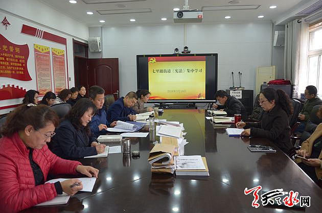 天天天水网讯(通讯员高虹)为深入贯彻落实党的十九大精神,学习宣传宪法,增强宪法意识,3月19日上午,七里墩街道召开会议,传达学习《中华人民共和国宪法修正案》有关精神及《宪法》修正内容。街道党工委副书记、纪工委书记张小刚主持会议并组织学习。