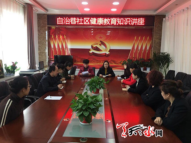 天天天水网讯(通讯员 安冬梅) 为了大力弘扬健康文化、传播健康理念、倡导健康行动,提高居民的保健意识,打造宜居健康社区,2018年3月20日,自治巷社区开展了健康教育宣传活动。活动中,社区干部向居民群众发放了健康教育科普宣传材料,宣传手册中运用通俗易懂的语言,让居民在休闲的同时也了解到了众多健康知识,提升了社区居民的健康知识水平与卫生意识,提高了居民的自我保健与群体保健能力。