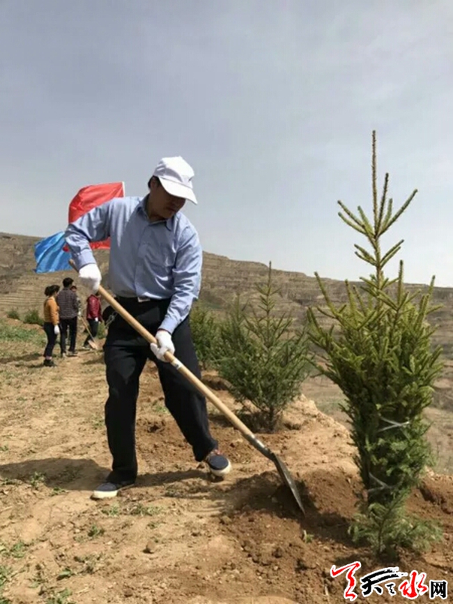 植树现场,大家个个热情洋溢、干劲十足、相互配合,按点挖坑、挥锹培土,每一个步骤都一丝不苟,精益求精,到处是一派热火朝天的劳动景象。活动从早上10点开始,经过4个多小时的植树,在六个台阶共种植了180多棵松树。这次义务植树活动使每一个干部对环境保护意识有了进一步提高,大家纷纷表示,以自己亲手植树的方式参与绿化,意义非凡,今后将以身作则,植绿、爱绿、护绿,为天水郡街道生态文明建设贡献一份力量。