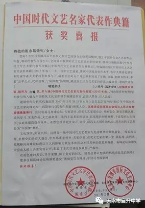 2017年3月,启升中学教师崔永昌先生参加“中国时代文艺名家”大赛,其硬笔书法作品<<孔雀东南飞>>荣膺大赛二等奖。崔老师获奖不仅是其个人的荣誉,更是全体启升人的荣誉,在此我们向崔老师致敬,祝贺他获奖。